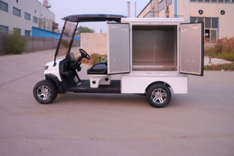 Your reliable solution for food transport—ideal for lighter loads. Especially suitable for hotels, resorts, catering delivery, and cold chain services. This food-grade large box golf cart, customized for hotels, resorts, and large events, uses stainless steel or food-grade plastic liners to ensure hygiene and safety throughout transportation. Whether for breakfast delivery, outdoor event supply, or in-park cold chain service, it meets daily needs.