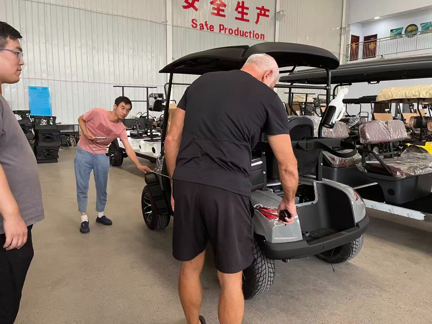 We presented a variety of configuration options, including carbon-fiber interiors, golf bag holders, sand bottle racks, and our latest 7.5KW high-performance motor. When it came to battery performance, we introduced different lithium options in detail. The clients were particularly impressed by the endurance of our models and finally chose the 72V150Ah configuration — ensuring maximum range and reliable power.